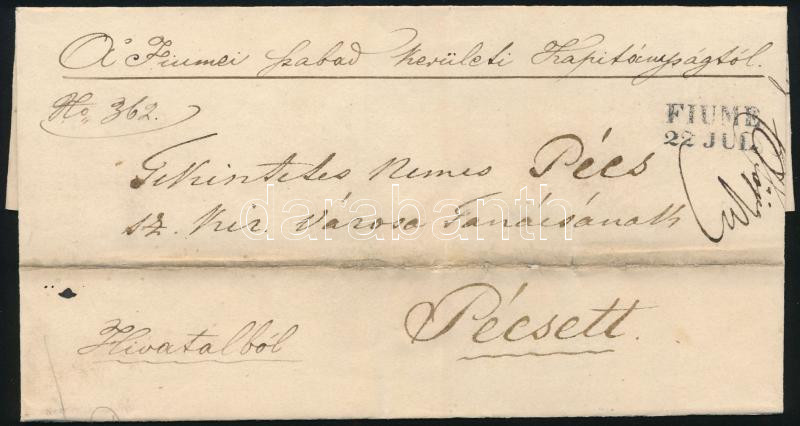 Beschreibung: ~1845 Ex offo levél "FIUME" - Pécs