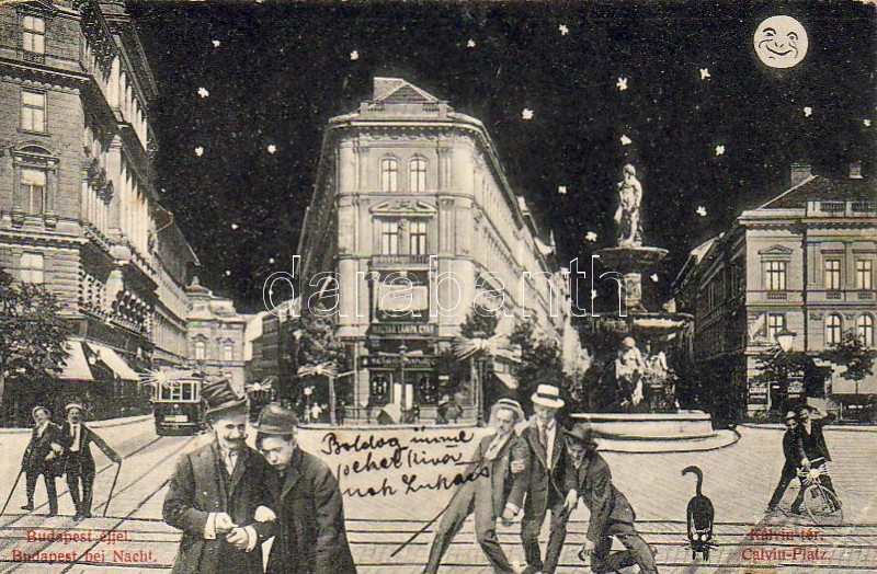 1899 Budapest IX. Kalvin-Platz bei Nacht https://www.darabanth.com/de/5-Gross-Auktion/5.1/Ansichtskarten-Ungarn/~1304/1899-Budapest-IX-Kalvin-Platz-bei-Nacht~II109331