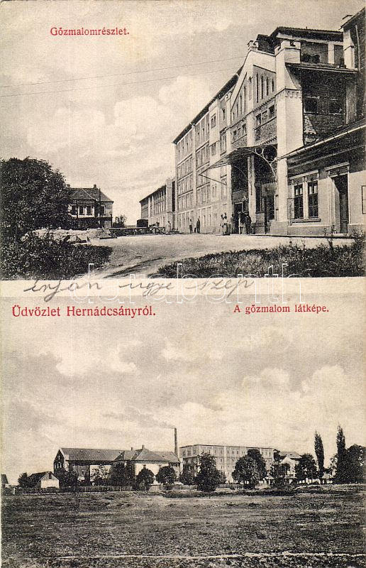 Hernádcsány mit Dampfmühle https://www.darabanth.com/de/5-Gross-Auktion/5.1/Ansichtskarten-Ungarn/~1324/Hernadcsany-mit-Dampfmuhle~II114235