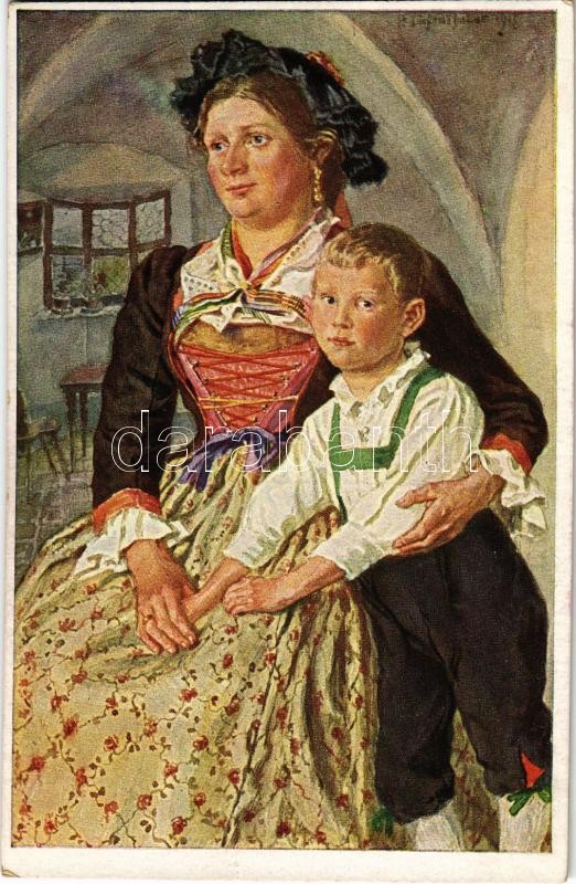 Beschreibung: Wirtin aus Passeier (Südtirol) Tiroler Trachten / South Tyrolean folklore, traditional costume. Joh. F. Amonn s: Tiefenthaler