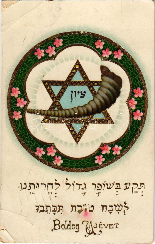 1914 Boldog Újévet! Zsidó üdvözlőlap, héber szöveggel. Judaika / Jewis... https://www.darabanth.com/de/500-Fernauktion/500.0/Ansichtskarten/Judaica~2500101/1914-Boldog-Ujevet-Zsido-udvozlolap-heber-szoveggel-Judaika-Jewish-New-Year-greeting-postcard~II3405410