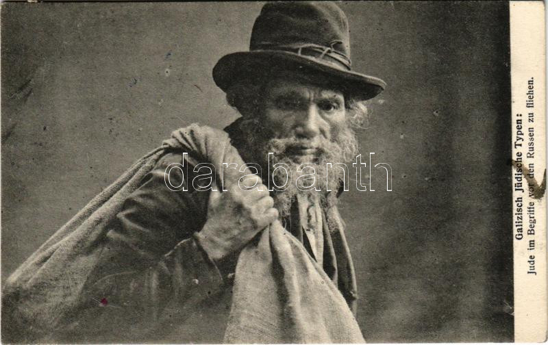 1915 Galizisch-jüdische Typen. Jude im Begriffe vor den Russen zu fliehen / Galician-Jewish characters. Jewish man, about to flee from the Russians. Judaica (fl)
