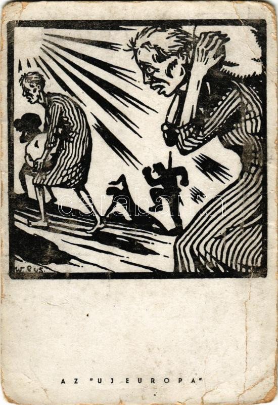Az új Európa. Illusztráció a Sárga Könyvből. Judaika művészlap / The New Europe. Illustration from the "Yellow Book". Judaica art postcard s: Sraga Weil (gyűrődések / creases)