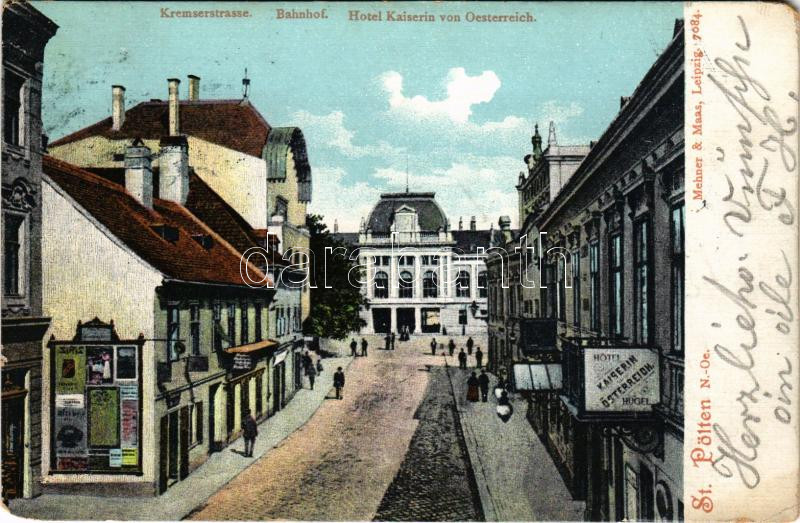 1905 Sankt Pölten, St. Pölten; Kremserstrasse, Bahnhof, Hotel Kaiserin... https://www.darabanth.com/de/500-Fernauktion/500.0/Ansichtskarten/Osterreich~2500017/1905-Sankt-Polten-St-Polten-Kremserstrasse-Bahnhof-Hotel-Kaiserin-von-Osterreich-street~II3402650