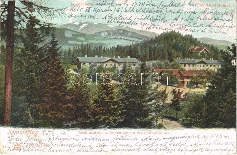 1911 Semmering, Wolfsbergkogel. Restauration u. Dependancen des Südbah... https://www.darabanth.com/de/500-Fernauktion/500.0/Ansichtskarten/Osterreich~2500017/1911-Semmering-Wolfsbergkogel-Restauration-u-Dependancen-des-Sudbahnhotel-restaurant-hotel-s~II2317986