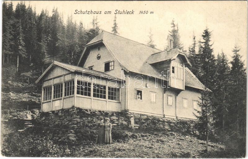 Beschreibung: Spital am Semmering (Steiermark), Schutzhaus am Stuhleck / chalet, shelter, mountain house. Aufn. v. Hof- u. Kammerphotographen Franz Jos. Böhm (EK)