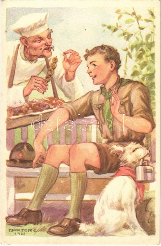 Beschreibung: A cserkész takarékos. Cserkész levelezőlapok kiadóhivatala / Hungarian boy scout art postcard s: Márton L. (EK)