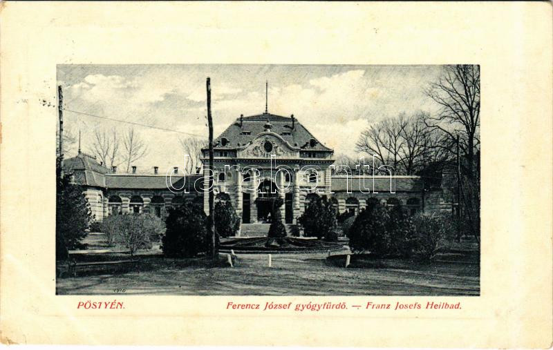 1911 Pöstyén, Piestany; Ferenc József gyógyfürdő. W. L. Bp. 4388. 1910... https://www.darabanth.com/de/500-Fernauktion/500.0/Ansichtskarten/Slowakei~2500007/1911-Postyen-Piestany-Ferenc-Jozsef-gyogyfurdo-W-L-Bp-4388-1910-Schultz-Paula-kiadasa-~II3405450