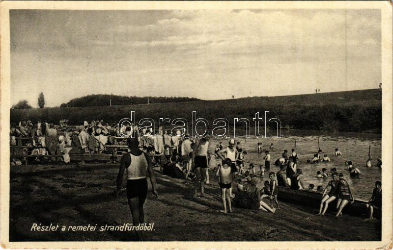 Beschreibung: Gyula, részlet a remetei strandfürdőből, fürdőzők (kopott sarkak / worn corners)