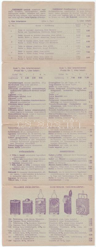 1915 Budapest V. Faludi Henrik és Társa nagykereskedés hadi felszerelések reklámja, leporello lap. Akadémia utca 1. / Hungarian military equipment advertisement leporello card (kis szakadások / small tears)