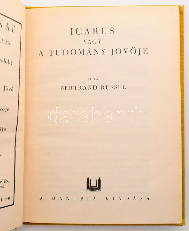 3 db könyv: Greguss Ágost: A balladáról. Bp., 1886, Franklin-Társulat. Harmadik kiadás. Kiadói egészvászon-kötés. + Wilde, Oscar: Az infánsnő születésnapja. Ford.: Takács Mária. O. Wilde válogatott művei II. Bp., [1922], Világirodalom. Félvászon-kötésben. + Russel [Russell], Bertrand: Icarus vagy a tudomány jövője. Ford.: Incze György. Pécs, [1928], Danubia. Kiadói egészvászon-kötés. Változó állapotban.