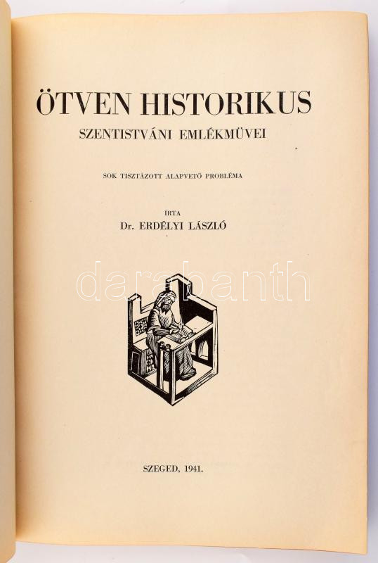 Erdélyi László: Ötven historikus szentistváni emlékművei. Sok tisztázott alapvető probléma. Bp., 1941, Eggenberger (Szeged, Városi-ny.), 231 p. Borító nélkül, a lapok nagyrészt jó állapotban.