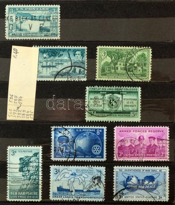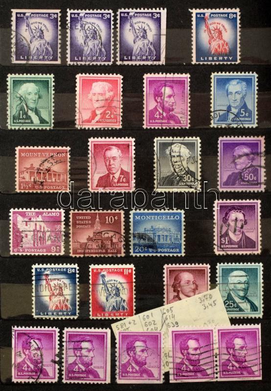 Beschreibung: 2 db közepes berakó 8 vastag fekete lappal, szürke borítóval, tokkal, bennük pár száz régi USA bélyeg, dobozban