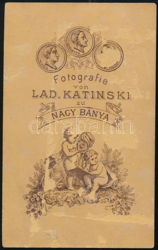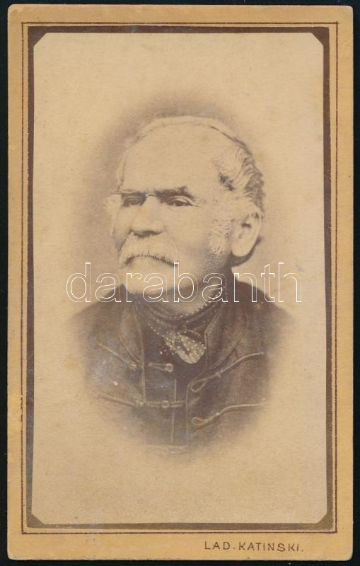 cca 1880 Előkelő idős úr portréja, vizitkártya Katinszky László (Lad. Katinski) nagybányai (Baia Mare) műterméből, kisebb felületi sérülésekkel, 10,5x6,5 cm (Ritka műterem!)