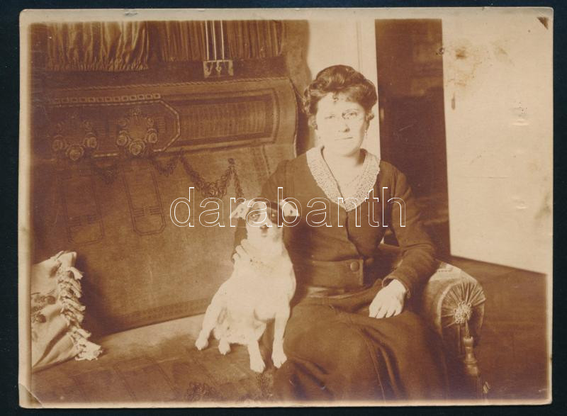 cca 1910 Asszony kutyával, foltos, 8,5x11,5cm https://www.darabanth.com/de/500-Fernauktion/500.0/Fotografie/Foto~1000005/cca-1910-Asszony-kutyaval-foltos-8-5x11-5cm~II3409845