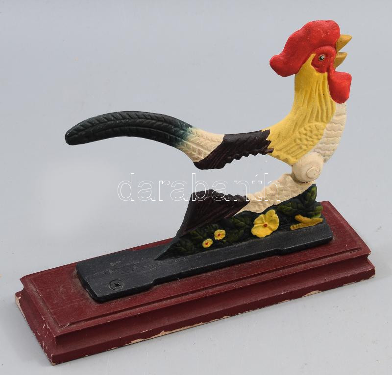 Festett vas kakas diótörő, fa talapzaton, 19x14 cm https://www.darabanth.com/de/500-Fernauktion/500.0/Kunst-Dokumente-andere-Sammelgebiete/Antik~500004/Festett-vas-kakas-diotoro-fa-talapzaton-19x14-cm~II3406181