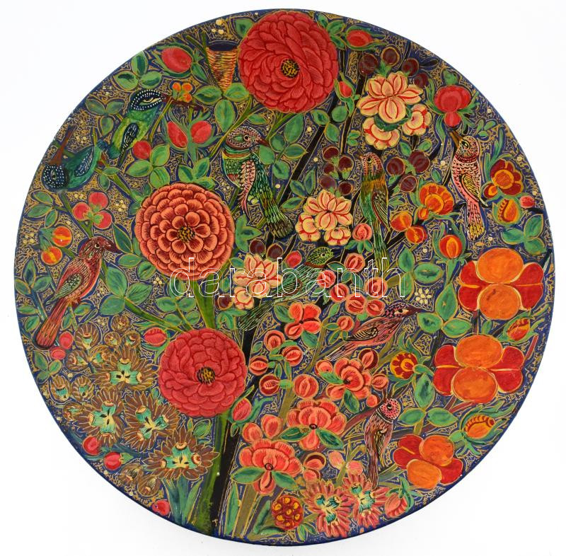 Beschreibung: Madaras tál. Kézzel festett, fa tál. Hátoldalán kis kopással d: 35 cm,