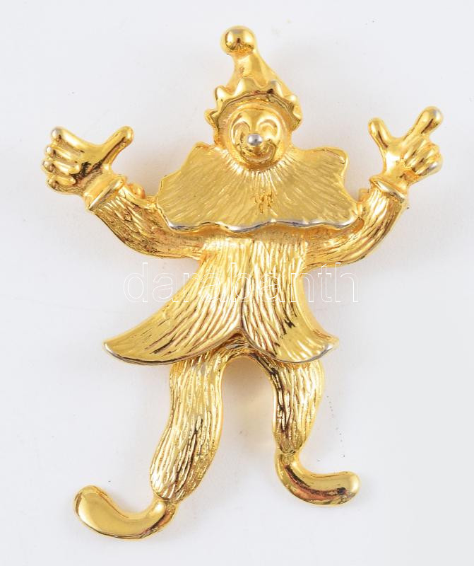 Beschreibung: Aranyszínű bohóc medálbross, 5x4 cm
