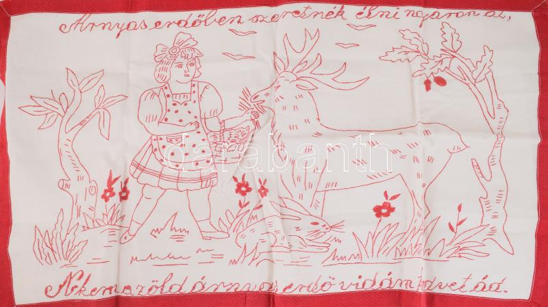 Kézzel hímzett konyhai falvédő, "Árnyas erdőben szeretnék élni ny... https://www.darabanth.com/de/500-Fernauktion/500.0/Kunst-Dokumente-andere-Sammelgebiete/Design-Mode~500008/Kezzel-himzett-konyhai-falvedo-Arnyas-erdoben-szeretnek-elni-nyaron-at-Nekem-e-zold-a~II3401871