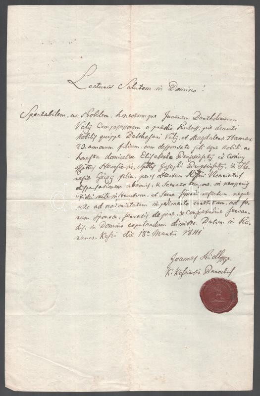 1841 Karancskeszi, latin nyelvű születési anyakönyvi kivonat / kereszt... https://www.darabanth.com/de/500-Fernauktion/500.0/Kunst-Dokumente-andere-Sammelgebiete/Dokument~1000001/1841-Karancskeszi-latin-nyelvu-szuletesi-anyakonyvi-kivonat-keresztlevel-viaszpecsettel~II3408115