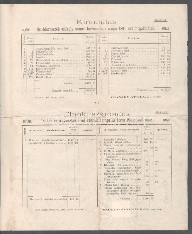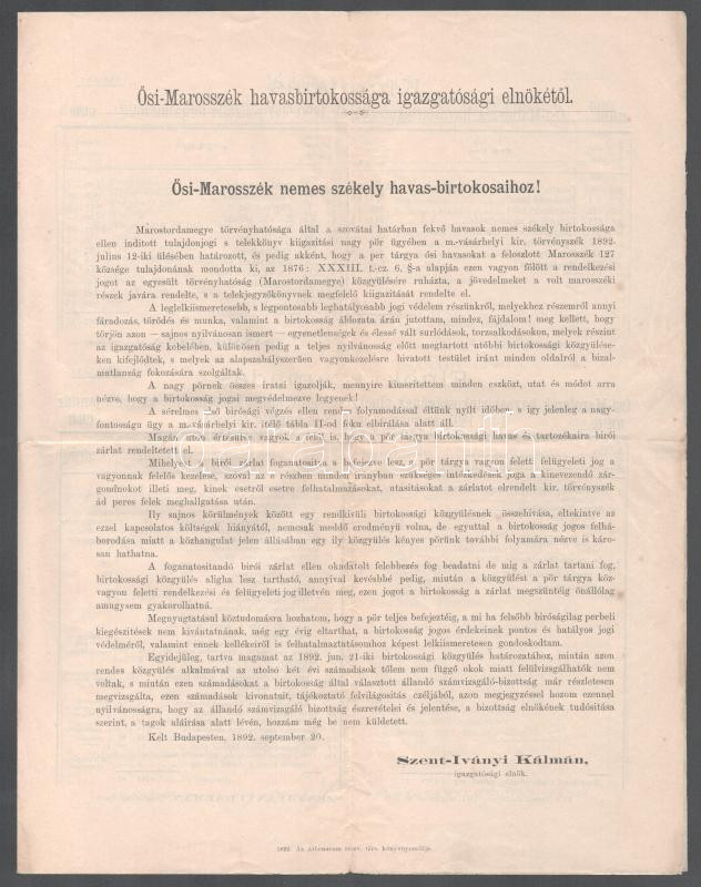 1892 Ősi Marosszék (Erdély) havasbirtokossága igazgatósági elnöke besz... https://www.darabanth.com/de/500-Fernauktion/500.0/Kunst-Dokumente-andere-Sammelgebiete/Drucksachen~1000015/1892-Osi-Marosszek-Erdely-havasbirtokossaga-igazgatosagi-elnoke-beszamoloja-a-nemes-szekely~II3410225