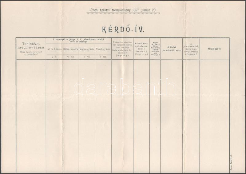 1897 Pécs, kerületi tornaverseny prospektusa, és kérdőíve, hajtottak, ... https://www.darabanth.com/de/500-Fernauktion/500.0/Kunst-Dokumente-andere-Sammelgebiete/Drucksachen~1000015/1897-Pecs-keruleti-tornaverseny-prospektusa-es-kerdoive-hajtottak-3-sztl-lev~II3409854