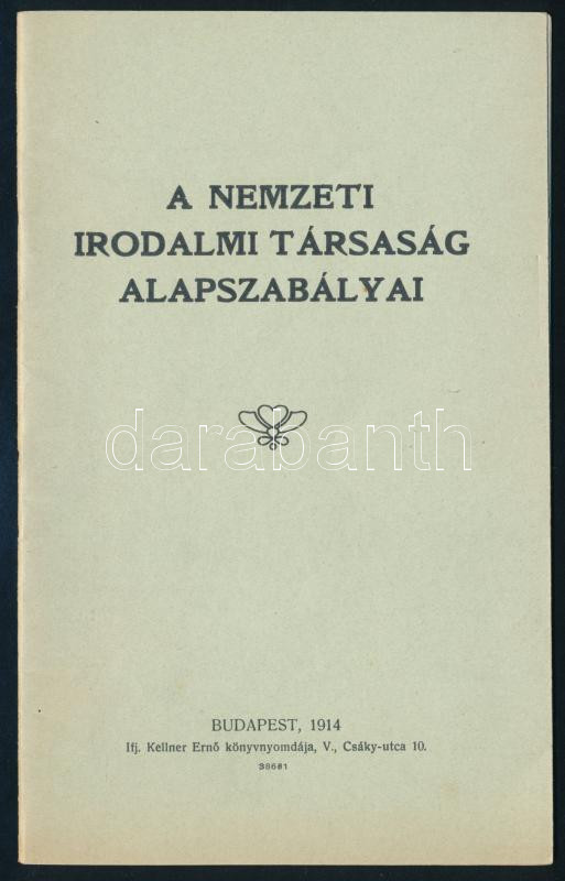 1914 A Nemzeti Irodalmi Társaság alapszabályai. Bp., 1914, Ifj. Kellne... https://www.darabanth.com/de/500-Fernauktion/500.0/Kunst-Dokumente-andere-Sammelgebiete/Drucksachen~1000015/1914-A-Nemzeti-Irodalmi-Tarsasag-alapszabalyai-Bp-1914-Ifj-Kellner-Erno-ny-16-p-Kiadoi~II3403411