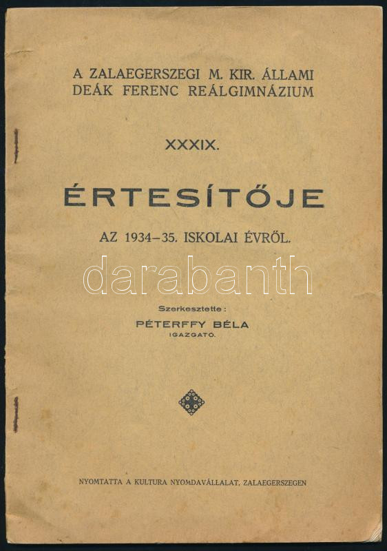 1934-35 Zalaegerszeg m. kir. állami Deák Ferenc reálgimnázium XXXIX: é... https://www.darabanth.com/de/500-Fernauktion/500.0/Kunst-Dokumente-andere-Sammelgebiete/Drucksachen~1000015/1934-35-Zalaegerszeg-m-kir-allami-Deak-Ferenc-realgimnazium-XXXIX-ertesitoje-szerk-Peterffy~II3411325