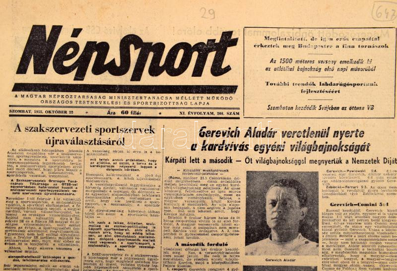 1950-1956 73 db Népsport újság, benne számos Aranycsapatról szóló és e... https://www.darabanth.com/de/500-Fernauktion/500.0/Kunst-Dokumente-andere-Sammelgebiete/Drucksachen~1000015/1950-1956-73-db-Nepsport-ujsag-benne-szamos-Aranycsapatrol-szolo-es-egyeb-erdekes-sport-hirrel-es~II3409039