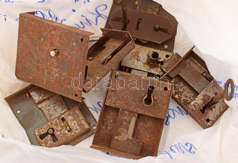 Beschreibung: 7 darab antik ládazár, közte réz, zömmel kulccsal