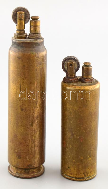 Beschreibung: 2 db II. világháborús, lőszerből készült öngyújtó 9 cm, 12 cm