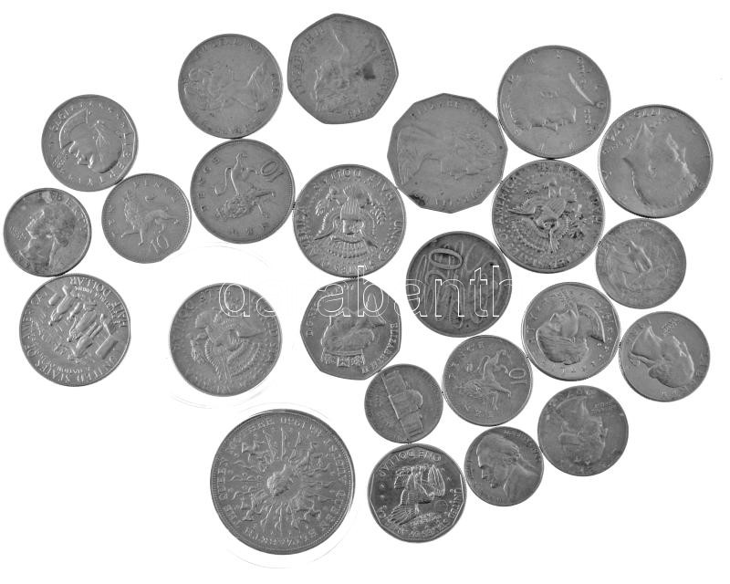 Amerikai Egyesült Államok 1947-1990. 5c - 1/2$ (3xklf, 10db) + 1976. 1/2$ "Kétszáz éves jubileum" + 1979. 1$ "Susan B. Anthony Dollar" (3x) + 1986. 1/2$ "Szabadság-szobor" + Nagy-Britannia 1968-1992. 10p - 50p (5xklf, 6db), közte 1980. 25p Cu-Ni "Queen Mother" kapszulában + Ausztrália 1977. 20c Cu-Ni + 50c Cu-Ni "Silver Jubilee" + Új-Zéland 1980. 20c Cu-Ni T:AU-VF, patina