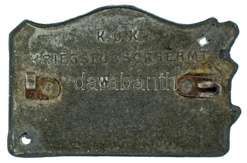Austro-Hungarian Monarchy 1916. "3. WEIHNACHTEN IM FELDE (3rd Christmas on the Battlefield)" Zn cap badge with "K.U.K. KRIEGSFÜRSORGEAMT" inscription and makers mark "WINTER & ADLER A G WIEN" on the back C:VF holes at the upper left and lower right corners, missing needle