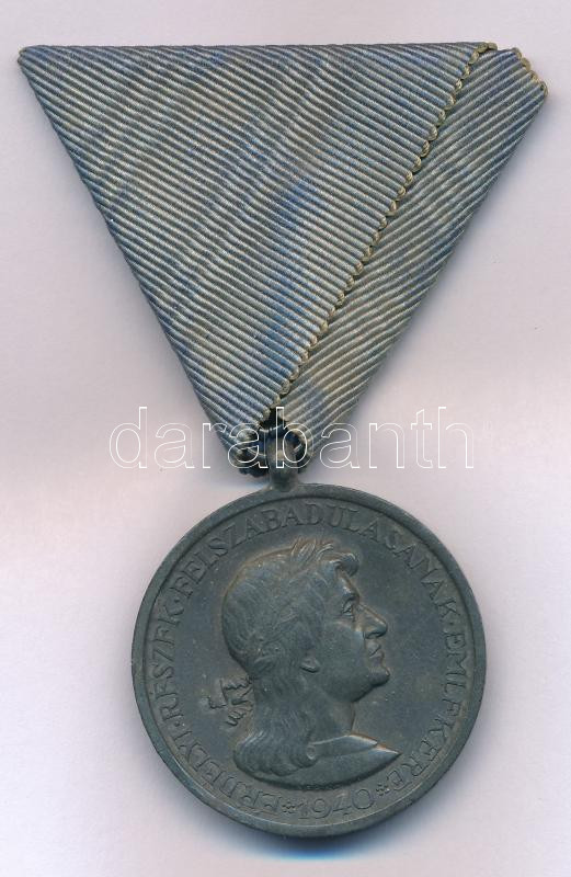 1940. "Erdélyi részek felszabadulásának emlékére" Zn emlékérem mellszalagon. Szign.: Berán T:XF