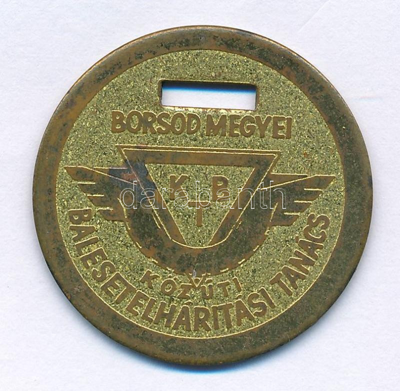 Beschreibung: DN "KBT - Borsod megyei Közúti Balesetelhárítási Tanács " egyoldalas Cu bárca T:VF