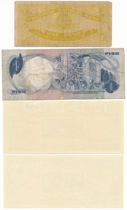 Philippines / Province of Cebu 1941. 1 Peso local money / necessity money (notgeld) + ND(1969) 1 Piso + 1966. "50th Anniversary of the National Bank of the Philippines" one-sided advertising money C:AU,VG