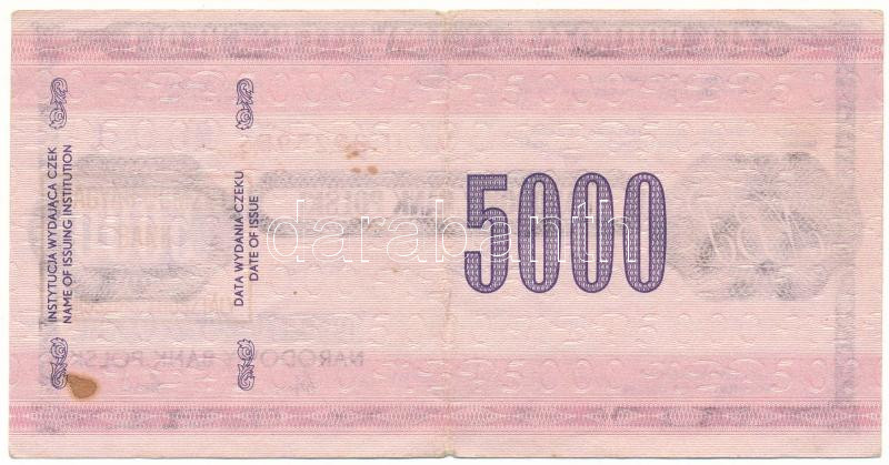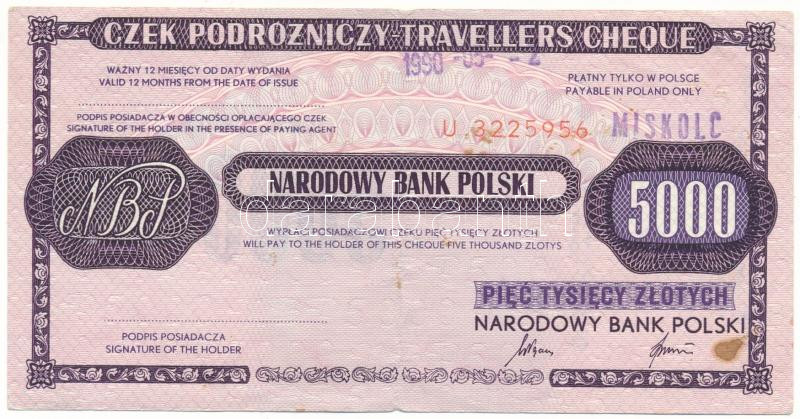 Beschreibung: Lengyelország 1990. 5000Zl "Lengyel Nemzeti Bank" utazási csekk, "Miskolc" felülbélyegzéssel T:F