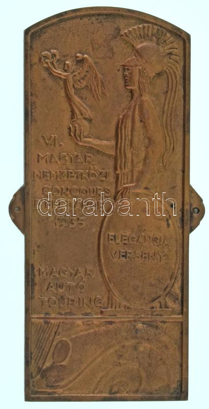 DN (1935) "VI. Magyar Nemzetközi Concours d'Élegance 1935 - Magyar Auto Touring - Elegáncia Verseny" autósport emlékplakett modern, bronz után öntése (91x49mm) T:AU,XF