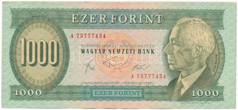 Beschreibung: 1983. március 25. 1000Ft "A 75777454" T:F erős papír