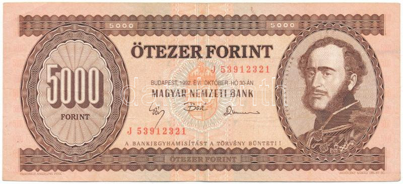 Beschreibung: 1992. 5000Ft "J 53912321" T:F, szép papír