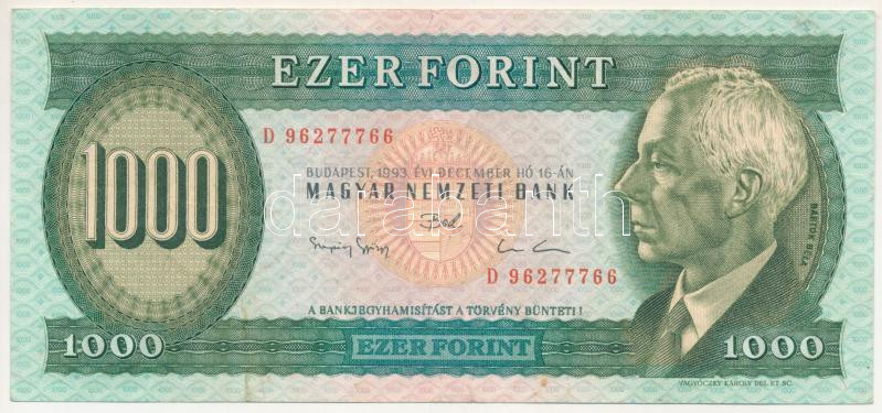 Beschreibung: 1993. 1000Ft "D 96277766" T:F kis folt, egyébként szép papír
