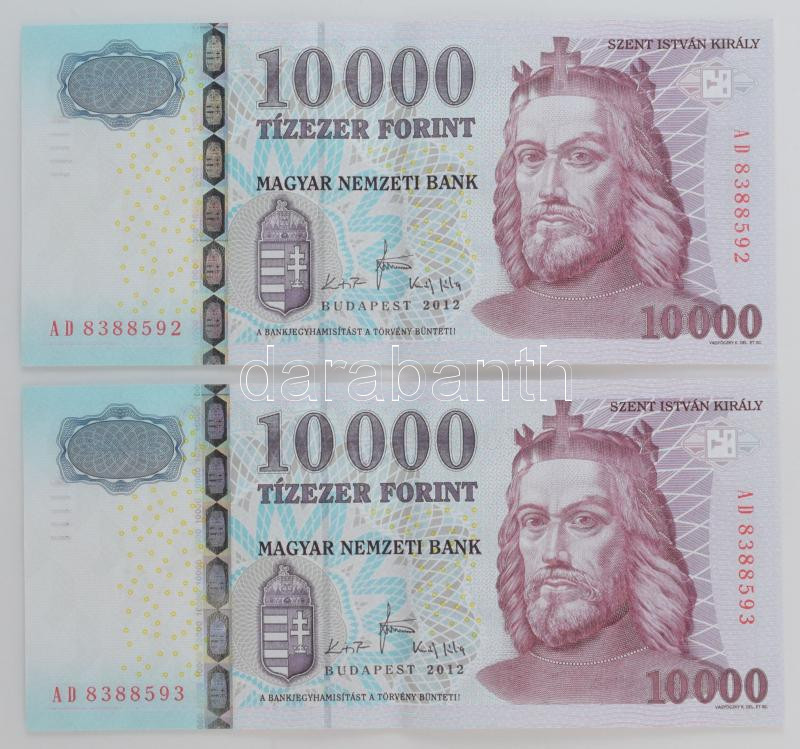 2012. 10.000Ft (2x) sorszámkövető "AD 8388592 - AD 8388593" ... https://www.darabanth.com/de/500-Fernauktion/500.0/Numismatik/Ungarische-Banknoten~1500054/2012-10000Ft-2x-sorszamkoveto-AD-8388592-AD-8388593-TXF~II3406464