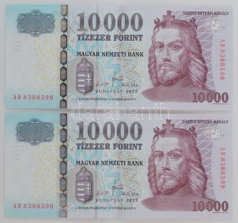 2012. 10.000Ft (2x) sorszámkövető "AD 8388598 - AD 8388599" ... https://www.darabanth.com/de/500-Fernauktion/500.0/Numismatik/Ungarische-Banknoten~1500054/2012-10000Ft-2x-sorszamkoveto-AD-8388598-AD-8388599-TXF~II3406475