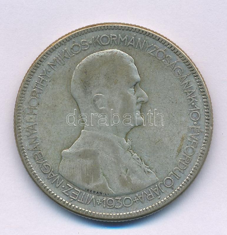 1930. 5P Ag "Horthy jobbra" T:F, patina