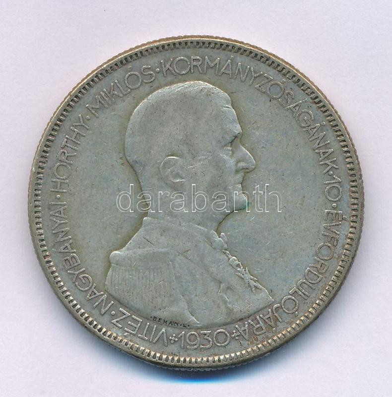 1930. 5P Ag "Horthy jobbra" T:F, patina