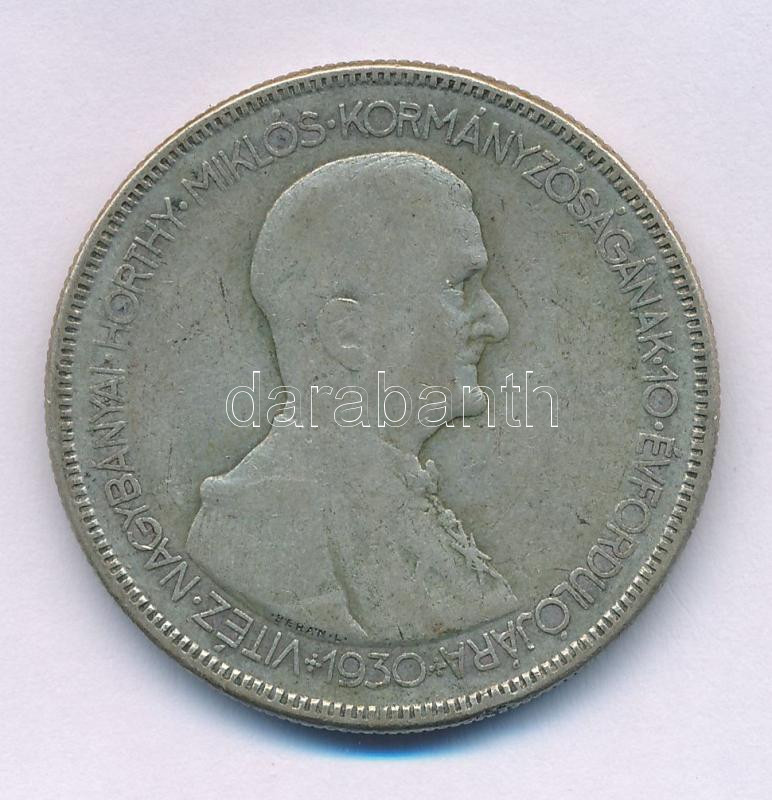 1930. 5P Ag "Horthy jobbra" T:F, patina