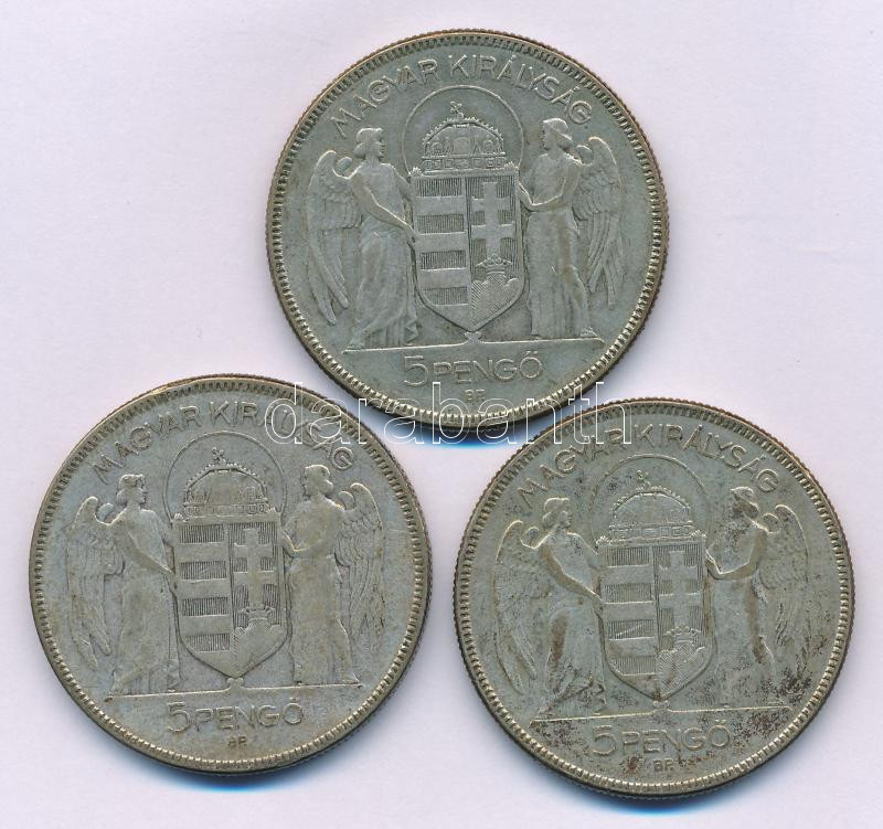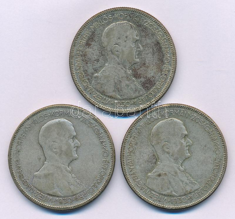1930. 5P Ag "Horthy jobbra" (3x) T:F patina