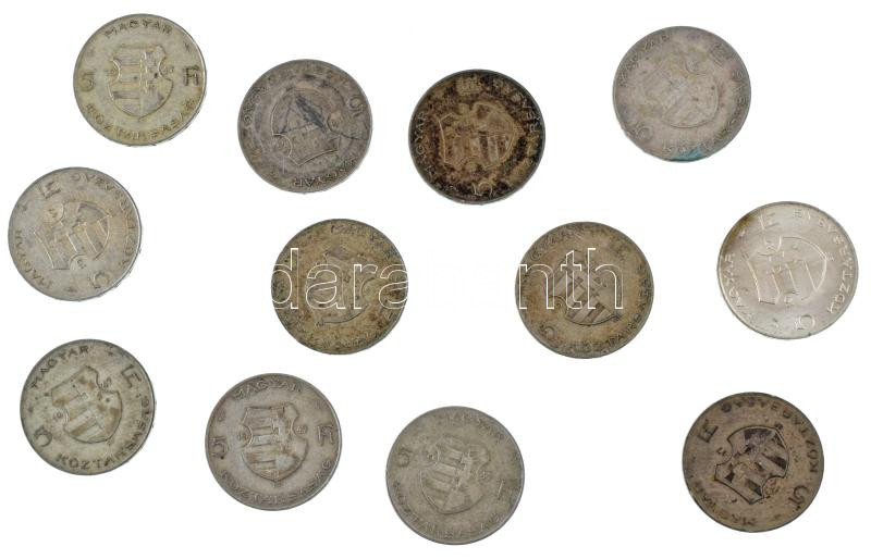 Beschreibung: 1947. 5Ft Ag "Kossuth" (12x) T:VF,F (közte 1db XF) patina, ph. Adamo F8.1