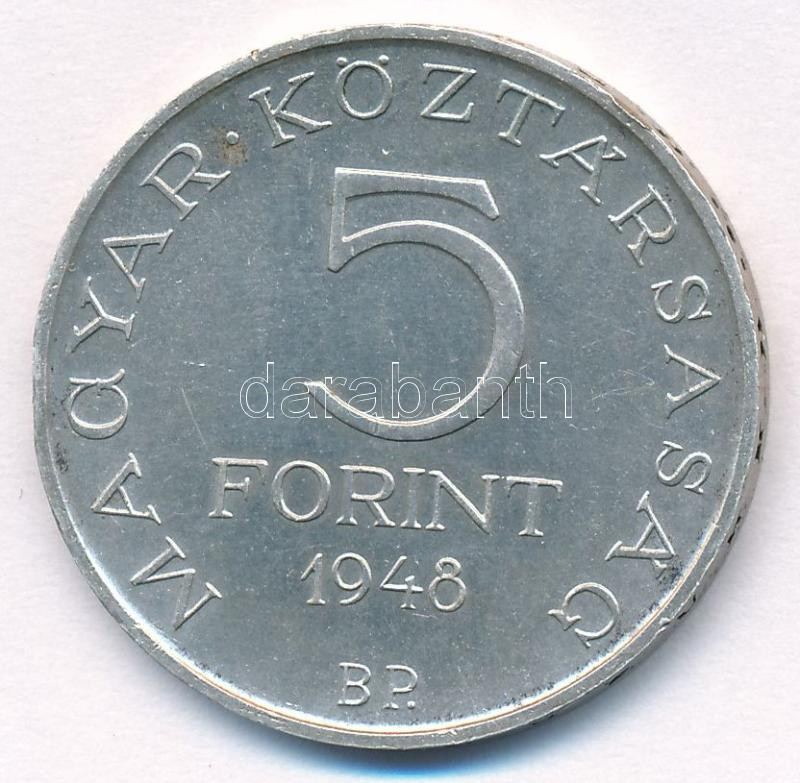 1948. 5Ft Ag "Petőfi" T:AU karc Adamo EM1 https://www.darabanth.com/de/500-Fernauktion/500.0/Numismatik/Ungarische-Munzen-und-Munzen-mit-ungarischem-Munzzeichen~1500055/1948-5Ft-Ag-3Cem3EPetofi3Cem3E-TAU-karc-Adamo-EM1~II3407388
