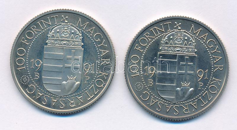 Beschreibung: 1991. 100Ft Cu-Ni "II. János Pál pápa látogatása " (2xklf) mindkettő kapszulában T:BU, UNC (eredetileg PP) több fo.